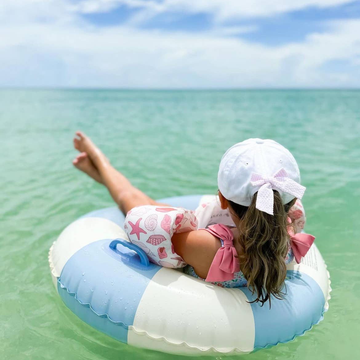 Crisp, Winnie White soft cotton twill is embroidered with a pair of tennis racquets and tennis ball and is adorned with a pink-and-white seersucker bow in back. The perfect athleisure accessory to take her from the court to the green — and everywhere in between.